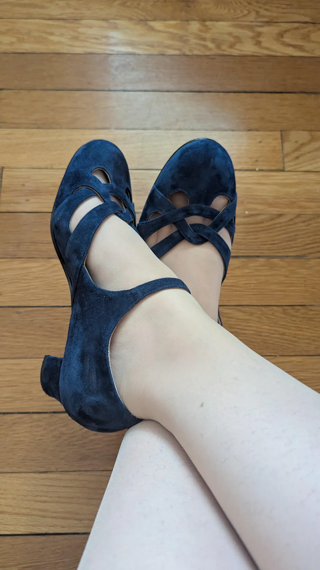 Late 1930s / early 1940s suede shoes - Navy blue- Ida
